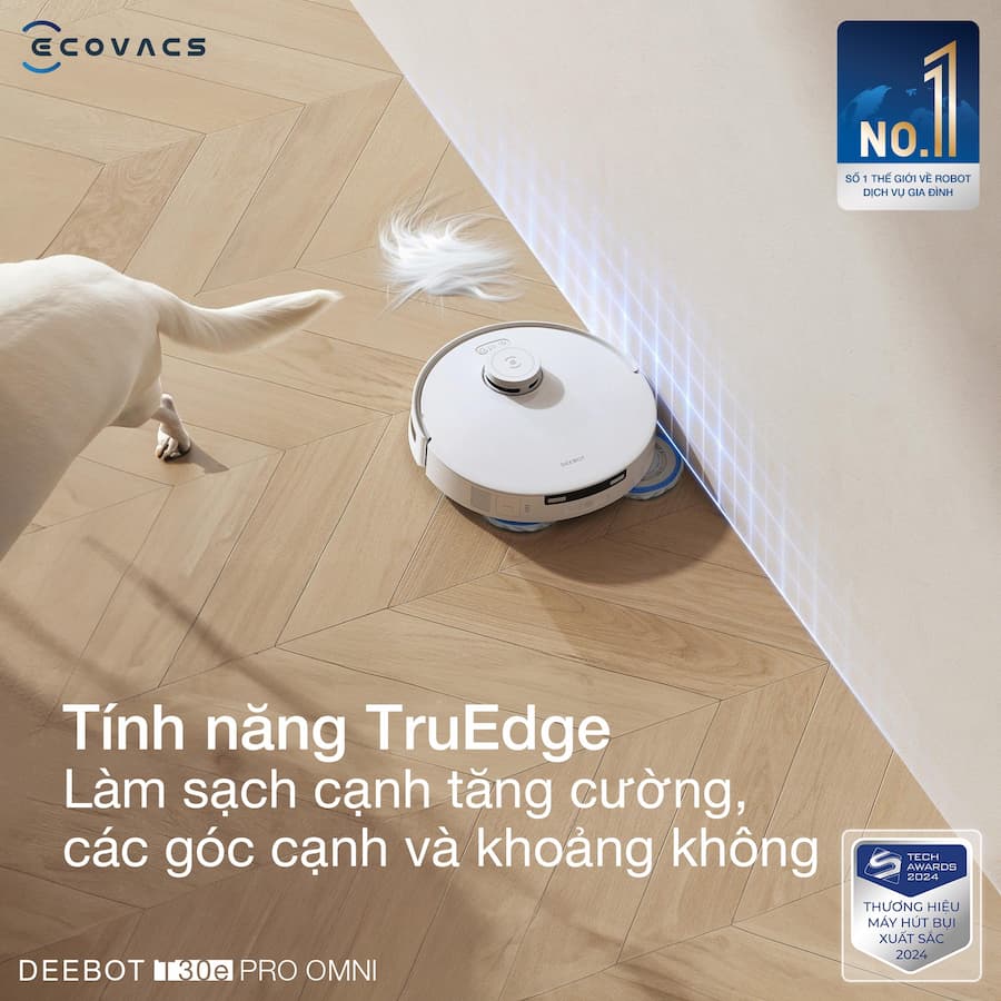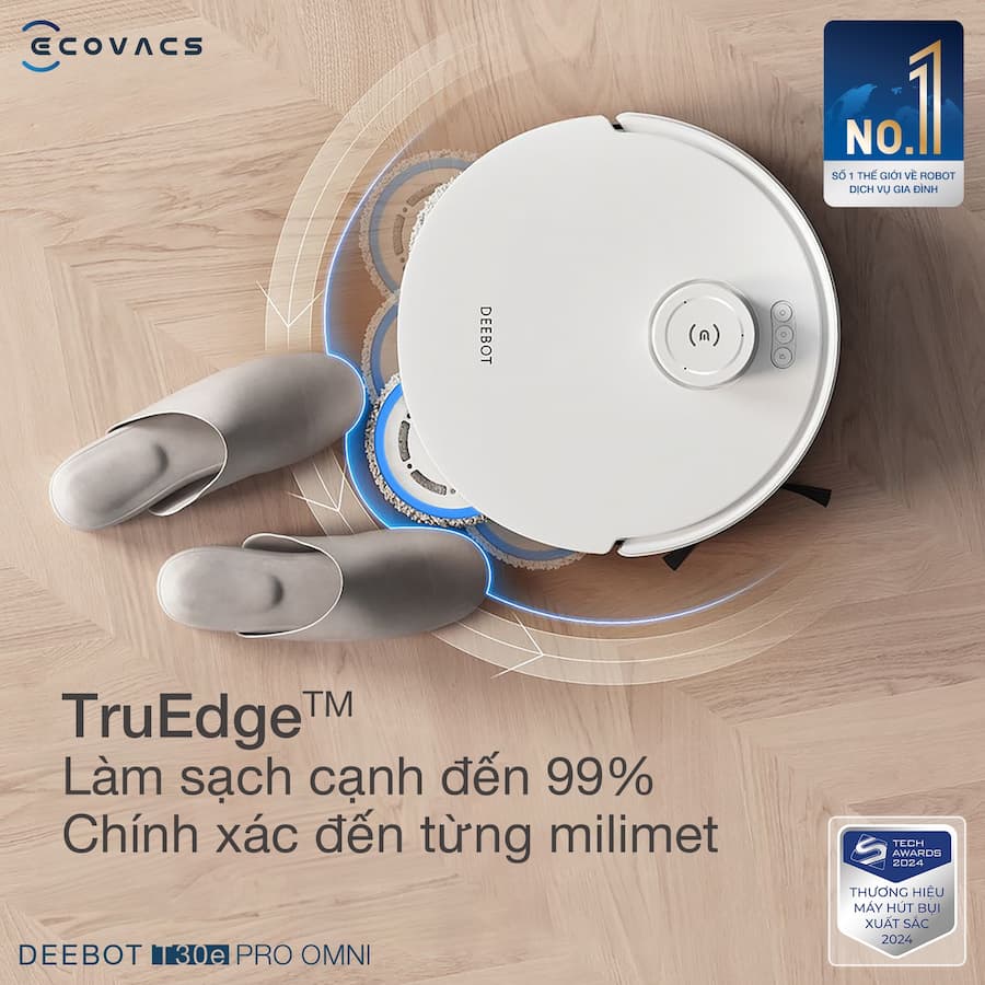 Công nghệ TruEdge™ Adaptive Edge Mopping: Đây là tính năng độc quyền giúp robot có thể tự động xòe giẻ lau để làm sạch sâu vào các góc tường, mép tường và chân đồ nội thất, đảm bảo không bỏ sót bất kỳ vị trí nào.