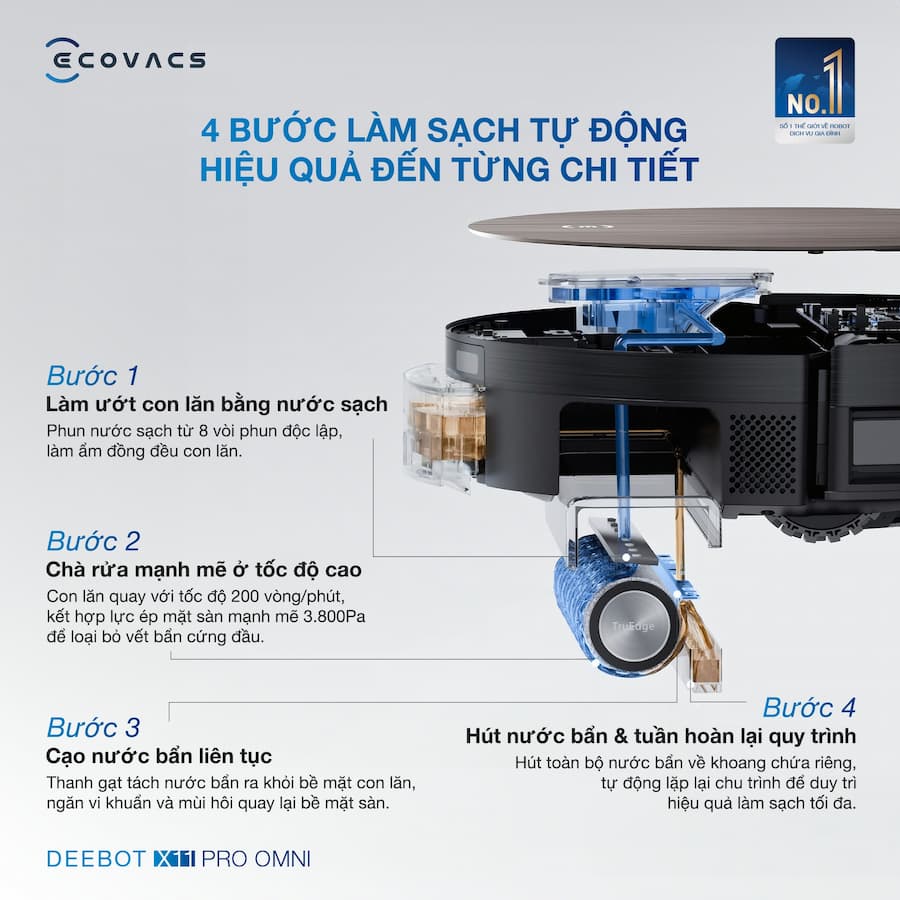 -34%Trong sự kiện “XTRA IN EVERY WAY, AHEAD IN EVERY PLAY”, màn trình làng mãn nhãn của DEEBOT X11 Family đã khiến toàn bộ khán phòng bùng nổ, đồng thời khẳng định bước tiến mới của ECOVACS với công nghệ tiên phong - mở ra chuẩn sống thông minh cho người dùng Việt. Robot hút bụi lau nhà Ecovacs DEEBOT X11 Pro Omni là mẫu flagship được trang bị rất nhiều công nghệ tiên tiến, tập trung vào khả năng làm sạch vượt trội và tự động hóa toàn diện. ECOVACS DEEBOT X11 Pro Omni hội tụ công nghệ cao cấp nhất, tối ưu hiệu quả làm sạch trên mọi bề mặt từ sàn gạch đến thảm, đảm bảo sạch sâu, gọn gàng, không gián đoạn. Đặc biệt, X11 Pro Omni với Triple Lift Mode: tự nhận diện vệt nước, nâng chổi chính & chổi cạnh để tránh lem bẩn, đồng thời nâng giẻ khi hút bụi để sàn luôn khô ráo. Không chỉ dẫn đầu về công nghệ làm sạch, DEEBOT X11 Pro Omni còn khẳng định đẳng cấp với thiết kế sang trọng trong từng chi tiết. Chất liệu cao cấp, hoàn thiện tỉ mỉ trong từng đường nét, Tone xám kim loại thời thượng, nâng tầm không gian như một món nội thất cao cấp. Cấu trúc liền mạch, ẩn tinh tế chi tiết kỹ thuật để giữ vẻ thanh thoát. Trạm sạc thế hệ mới, gọn gàng nhưng tích hợp đầy đủ công năng. 👉 Mua ngay X11 Pro Omni để trải nghiệm sự sang trọng thực thụ.