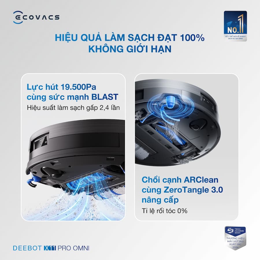 Robot hút bụi lau nhà Ecovacs X11 Pro Omni là sự kết hợp hoàn hảo giữa công nghệ hiện đại và hiệu suất làm sạch vượt trội. Sản phẩm được trang bị hàng loạt cải tiến tiên tiến như công nghệ sạc nhanh PowerBoost, lực hút siêu mạnh BLAST, hệ thống con lăn OZMO 2.0 cùng AI Stain Detection nhận diện vết bẩn thông minh. Không chỉ dừng lại ở khả năng làm sạch toàn diện, Deebot X11 Pro Omni còn sở hữu trạm OMNI thế hệ mới với nhiều tính năng tự động hóa và thiết kế sang trọng.