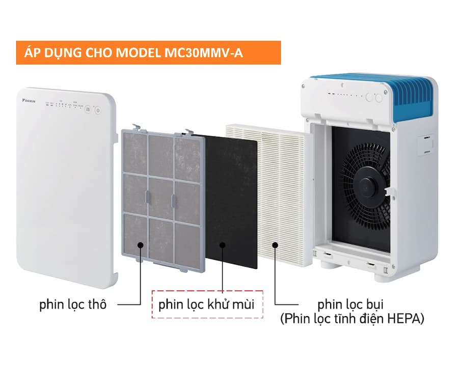 Màng lọc khử mùi của Daikin MC30VVM-A hay còn gọi là màng Cacbon với cấu tạo với nhiều những khoảng trống nhỏ chứa các hạt than hoạt tính. Than này là Cacbon được hoạt hóa tại nhiệt độ rất cao trong 1 môi trường yếm khí với nguồn nguyên liệu là gỗ, vỏ gáo dừa, cây tre, mùn cưa, trấu,..