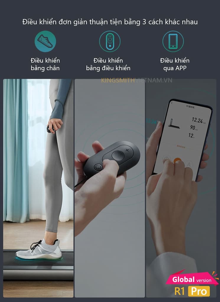 Ngoài ra, việc điều khiển Kingsmith R1 Pro ở đây cũng được thực hiện theo nhiều cách: