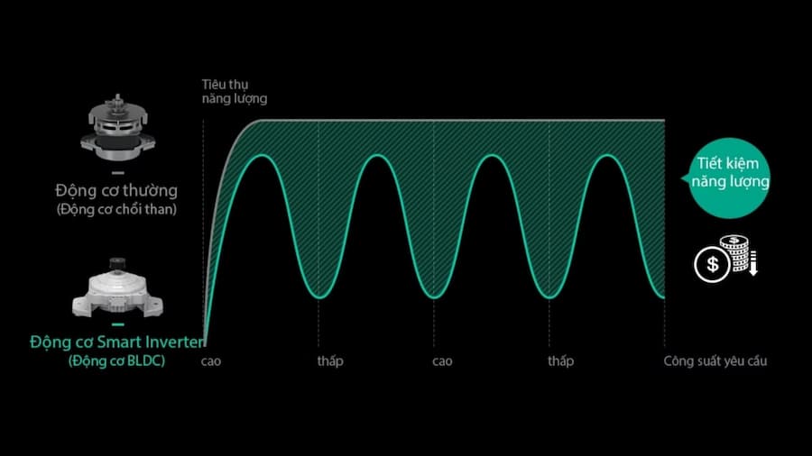 Tiết kiệm điện nước: Công nghệ Inverter giúp tối ưu hóa điện năng tiêu thụ.