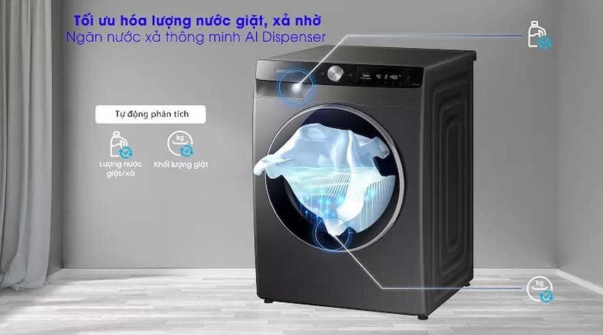 Không phải tự nhiên mà máy giặt quần áo Samsung WW10T634DLX/SV được gọi là một máy giặt thông minh. Đó là nhờ vào khả năng tự phân tích toàn diện một cách chính xác từ trí tuệ AI: