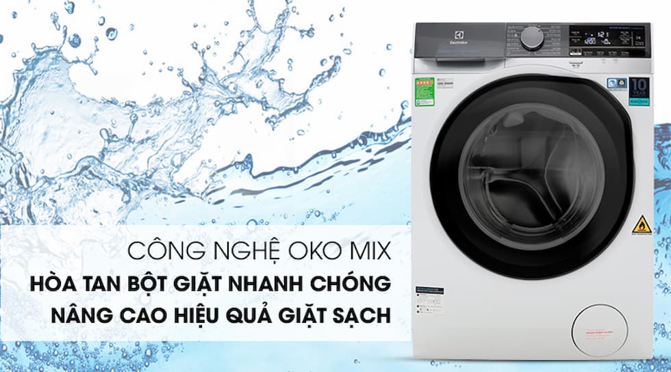Công nghệ Oko Mix tích hợp trong chu trình giặt giúp hòa tan bột giặt nhanh chóng với khối lượng quần áo bất kỳ, nâng hiệu quả giặt giũ sạch và nhanh hơn. Cũng nhờ đó, bột giặt được hòa tan với nước nhanh hơn trước khi đưa vào lồng giặt, quần áo sau giặt cũng tránh bị dính cặn xà phòng cho kết quả sạch trọn vẹn.