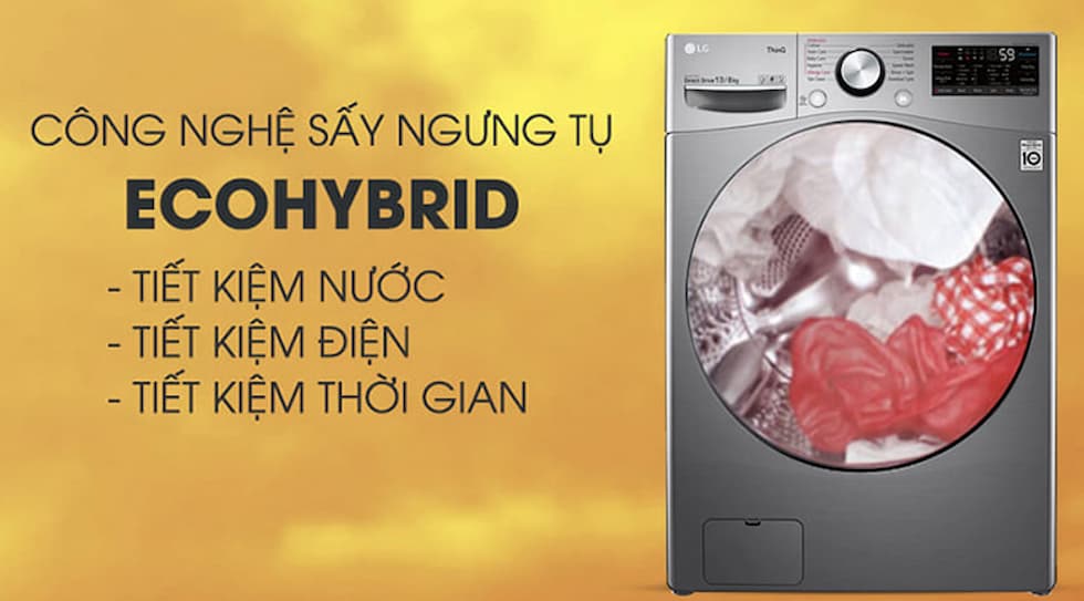 Ngoài tính năng giặt quần áo như những máy giặt thông thường, LG Inverter FV1413H3BA còn có khả năng sấy khô quần áo một cách nhanh chóng với khối lượng đến 8 kg. Từ giờ, bạn sẽ không cần phải mua thêm một chiếc máy sấy để dùng vào những khi độ ẩm ngoài trời quá cao nữa, sản phẩm sử dụng công nghệ sấy hiện đại Eco Hybrid có khả năng sấy khô áo quần ngay sau quá trình giặt lên tới 90%. Điều này giúp giảm thiểu thời gian, diện tích hay công sức một cách tối đa Bởi vậy, đây chắc chắn là lựa chọn lý tưởng cho cả nhà trong những ngày mưa, nồm ẩm, hay chỉ đơn giản là muốn quần áo được làm sạch và khô ráo nhanh chóng.