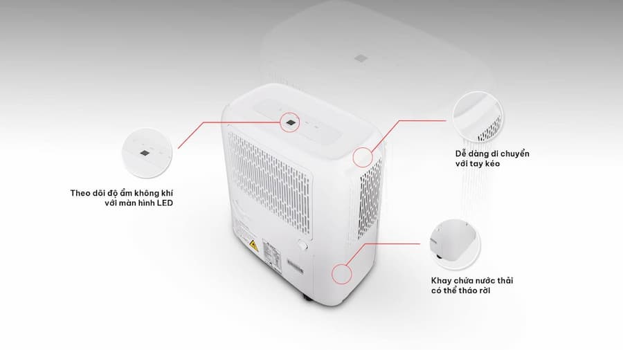 Công suất hút ẩm: Khoảng 10 lít/ngày, phù hợp với diện tích phòng từ 16 đến 22m².