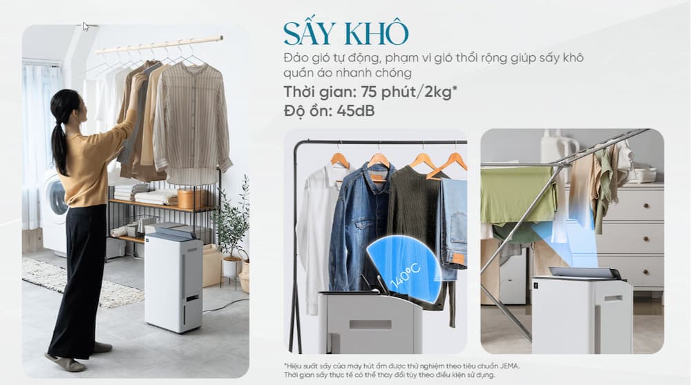 | Chế độ hoạt động | Hút ẩm, Sấy khô quần áo, Khử mùi |