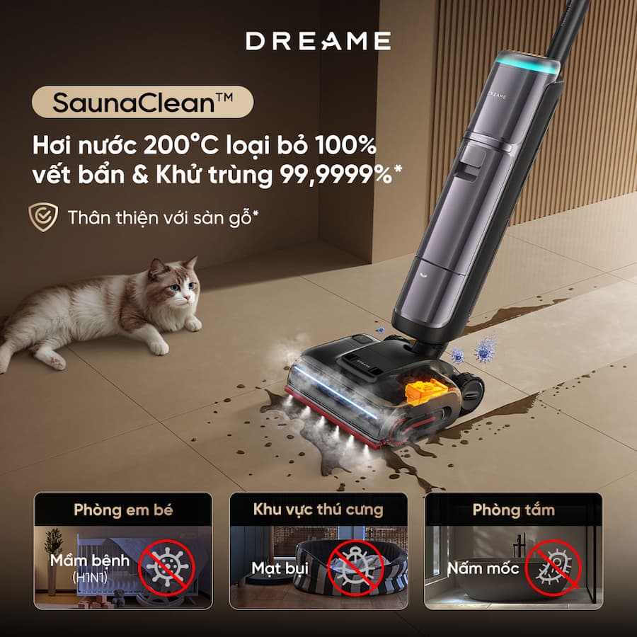 Hiệu quả của hơi nước siêu nhiệt không chỉ dừng lại ở việc làm sạch vết bẩn hữu cơ mà còn có tác dụng diệt khuẩn ở cấp độ vi mô. Các thử nghiệm cho thấy khả năng loại bỏ vi khuẩn, nấm mốc và mạt bụi đạt mức 99,9999%. Điều này đặc biệt có ý nghĩa trong việc xử lý các khu vực nhạy cảm như nhà bếp hay khu vực vui chơi của trẻ nhỏ, nơi vi khuẩn thường tích tụ trong các kẽ hở của sàn gỗ hoặc gạch men.