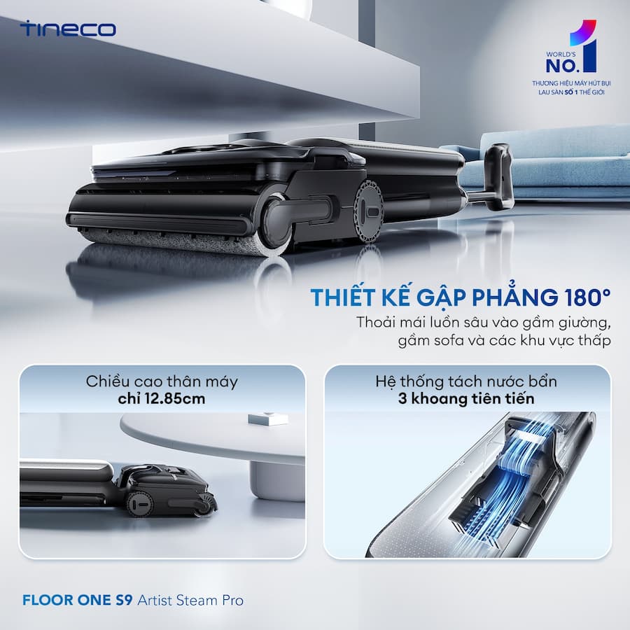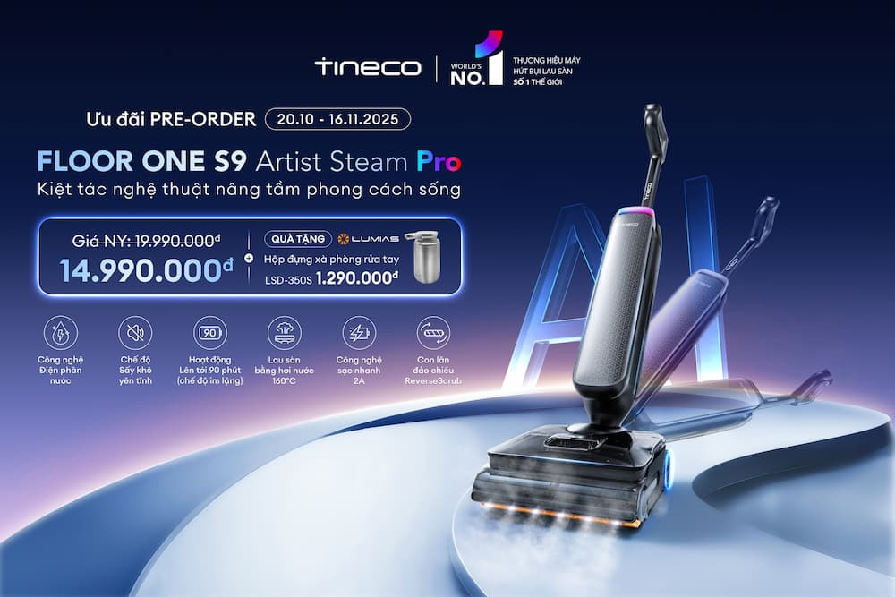 -32%Tineco S9 Artist Steam Pro - Nâng chuẩn làm sạch toàn diện với hơi nước siêu nhiệt cùng loạt công nghệ tiên phong! Máy hút bụi lau nhà Tineco Floor One S9 Artist Steam Pro là một mẫu máy lau sàn khô ướt cao cấp, nổi bật với khả năng kết hợp hút bụi, lau sàn và sử dụng hơi nước nóng để làm sạch và diệt khuẩn. Dầu mỡ tan biến, vi khuẩn không còn - tất cả nhờ Tineco S9 Artist Steam Pro, chuẩn mực mới trong công nghệ làm sạch: HyperSteam 160°C - Hơi nước siêu nhiệt đánh bay vết bẩn cứng đầu, diệt sạch 99.99% vi khuẩn. Thiết kế gập phẳng 180° - Linh hoạt luồn sâu vào gầm thấp, chinh phục từng khe hẹp. Làm sạch cạnh 3 mặt - Ôm sát mép tường, chân ghế, dọn sạch mọi góc khuất. Công nghệ ReverseScrub - Con lăn đảo chiều, tăng áp xoáy mạnh, đánh tan vết bẩn cứng đầu, không để lại vệt nước. Chống rối DualBlock - Xử gọn tóc rụng và lông thú cưng, không lo mắc kẹt tại con lăn. Hoạt động lên đến 90 phút - Đủ sức làm sạch toàn bộ căn nhà, không lo gián đoạn. Tự động làm sạch FlashDry - Giặt nóng, sấy khô tại 85°C, cho chổi lăn sạch sâu và khô ráo. Tineco S9 Artist Steam Pro - Một lần lướt, sàn sáng bóng, sạch từng góc!