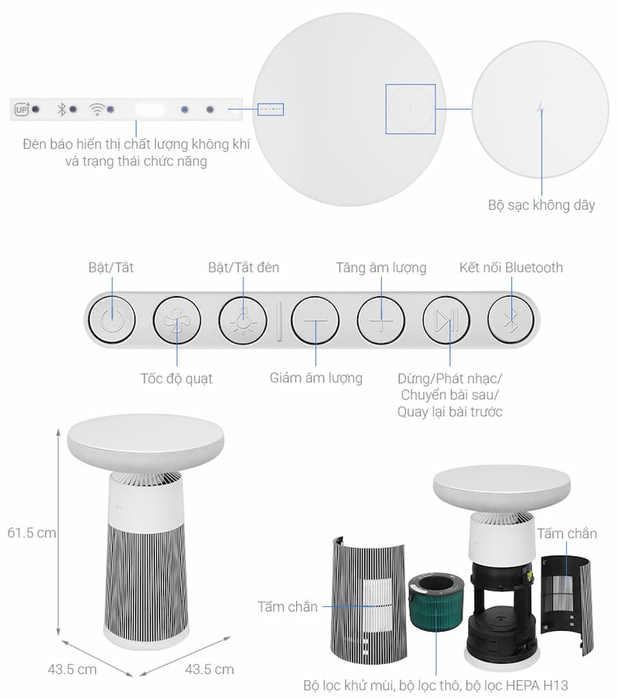 Thẩm mỹ cao: Không giống một chiếc máy lọc khí truyền thống, nó trông như một chiếc bàn trang trí cao cấp.