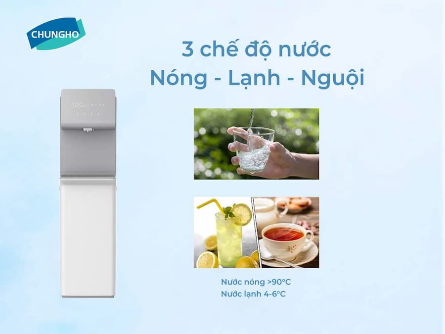 Nguồn nước sạch, an toàn là yếu tố quan trọng cho sức khỏe. Máy lọc nước nóng lạnh ChungHo 600UV (CHP-600H05UV), thương hiệu cao cấp từ Hàn Quốc, là giải pháp hoàn hảo mang đến nguồn nước tinh khiết, diệt khuẩn 99.9% nhờ công nghệ RO kết hợp UV tiên tiến. Với thiết kế hiện đại, 3 chế độ nước tiện lợi và nhiều tính năng thông minh, ChungHo 600UV là lựa chọn lý tưởng cho gia đình và văn phòng.