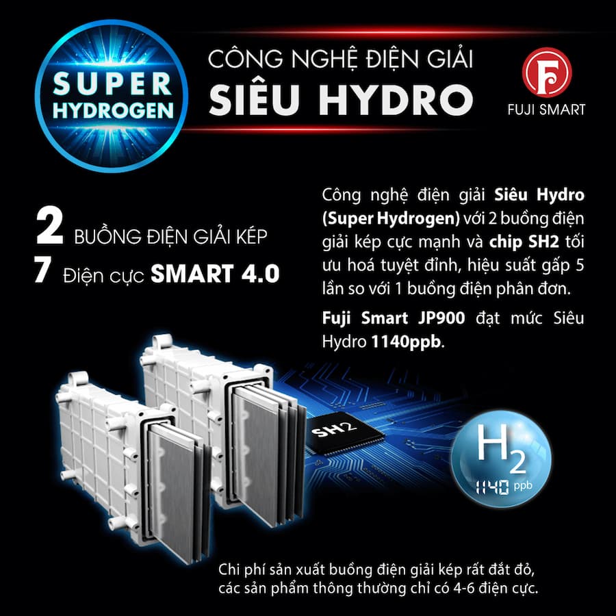 Tạo nước siêu kiềm - siêu axit: Nhờ công nghệ điện giải muối Aizu Tech 4.0 độc quyền, Fuji Smart JP900 có thể tạo ra nước iON siêu kiềm (pH >11.0) và nước iON siêu axit (pH ~2.3), phục vụ các mục đích đặc biệt như ngâm rửa thực phẩm, sát khuẩn...