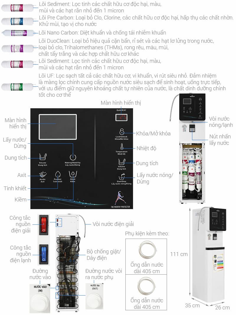Tạo nước Nóng thông minh - Lạnh - ION Kiềm Công nghệ Quik Heat - Nóng thông minh và công nghệ làm lạnh bằng Block với gas R134a Nước sau lọc đạt chuẩn nước uống trực tiếp QCVN 6-1: 2010/ Bộ Y Tế |