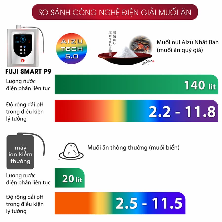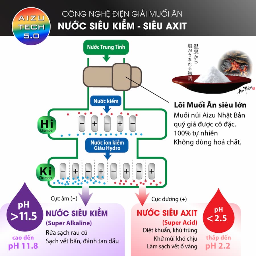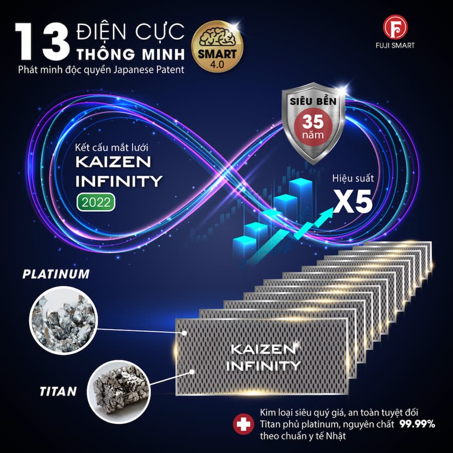 Công nghệ Smart 4.0: Đây là công nghệ độc quyền của Fuji, kết hợp giữa phần cứng và phần mềm để tối ưu hóa quá trình điện phân. Nó giúp máy hoạt động hiệu quả, tiết kiệm năng lượng và tăng tuổi thọ điện cực.