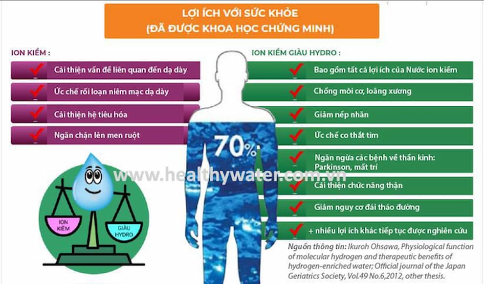 1. Hỗ trợ sức khỏe nhờ nước ion kiềm giàu hydro: