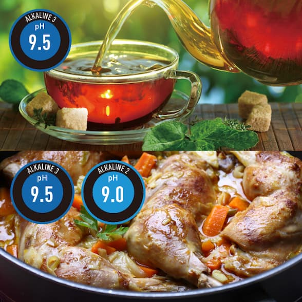 pH 9.5: Dùng để uống, pha trà, cà phê, nấu ăn, giúp chiết xuất hương vị và dinh dưỡng từ thực phẩm.