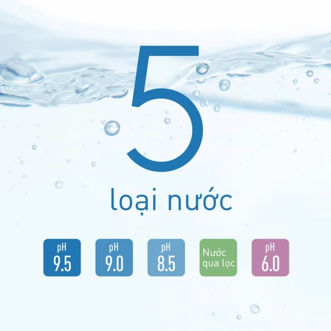 pH 9.5: Uống hàng ngày, pha trà, cà phê, nấu súp, hầm xương. Nước kiềm giàu Hydrogen giúp chống oxy hóa, hỗ trợ cải thiện các triệu chứng liên quan đến dạ dày và đường ruột.