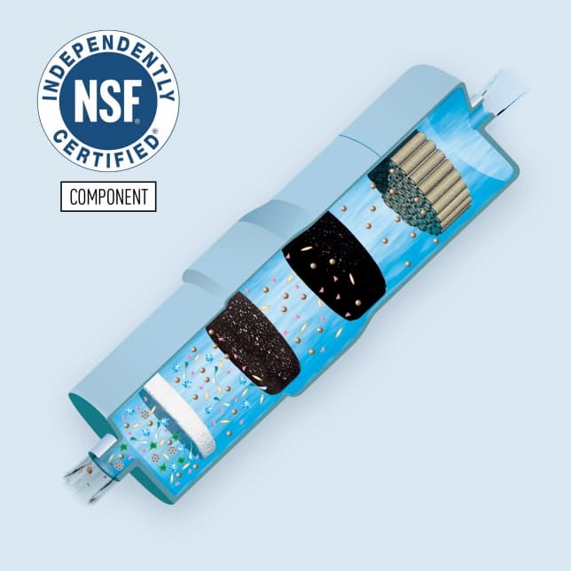 Hệ thống lọc: Bộ lọc 4 tầng (vải không dệt, gốm, than hoạt tính, màng lọc sợi rỗng) giúp loại bỏ 19 chất độc hại theo tiêu chuẩn công nghiệp Nhật Bản (JIS S3201) và loại bỏ đến 99,99% vi khuẩn, trong khi vẫn giữ lại các khoáng chất có lợi.