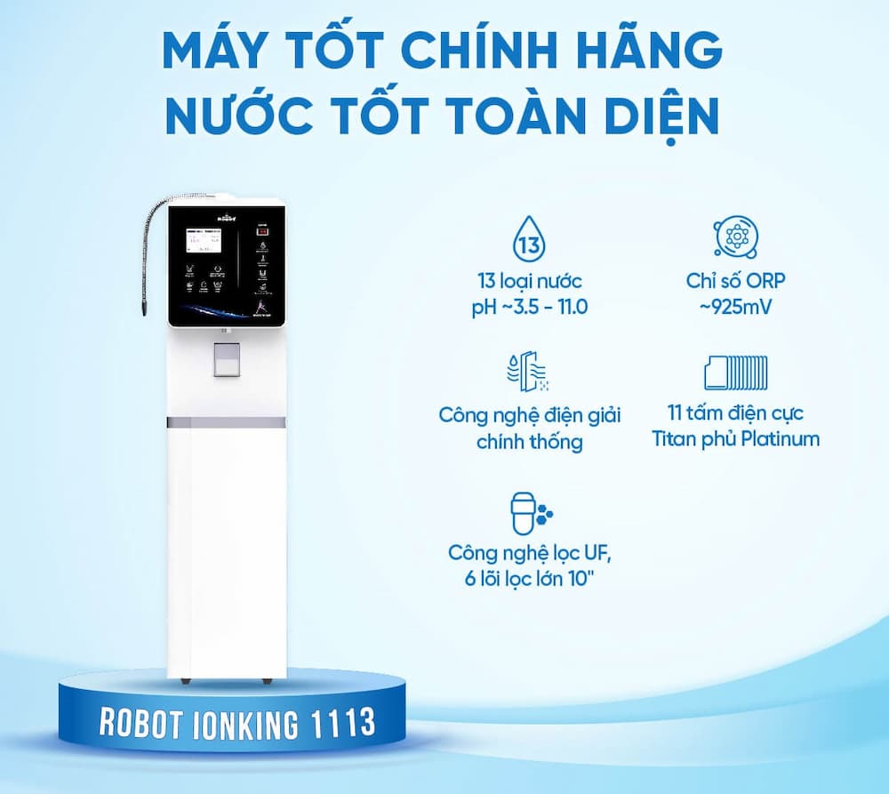 Máy lọc nước iON kiềm Robot ionKing 1113 được đánh giá là một sản phẩm cao cấp với nhiều ưu điểm: