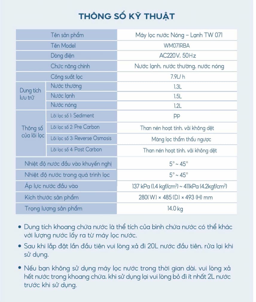 Lời khuyên: Nếu bạn đang tìm kiếm một thiết bị vừa lọc sạch, vừa thay thế được bình thủy điện và tủ lạnh cho nhu cầu uống nước hàng ngày của gia đình từ 3-5 người, TokTok TW-071 là lựa chọn cực kỳ tối ưu về cả thẩm mỹ lẫn công năng.