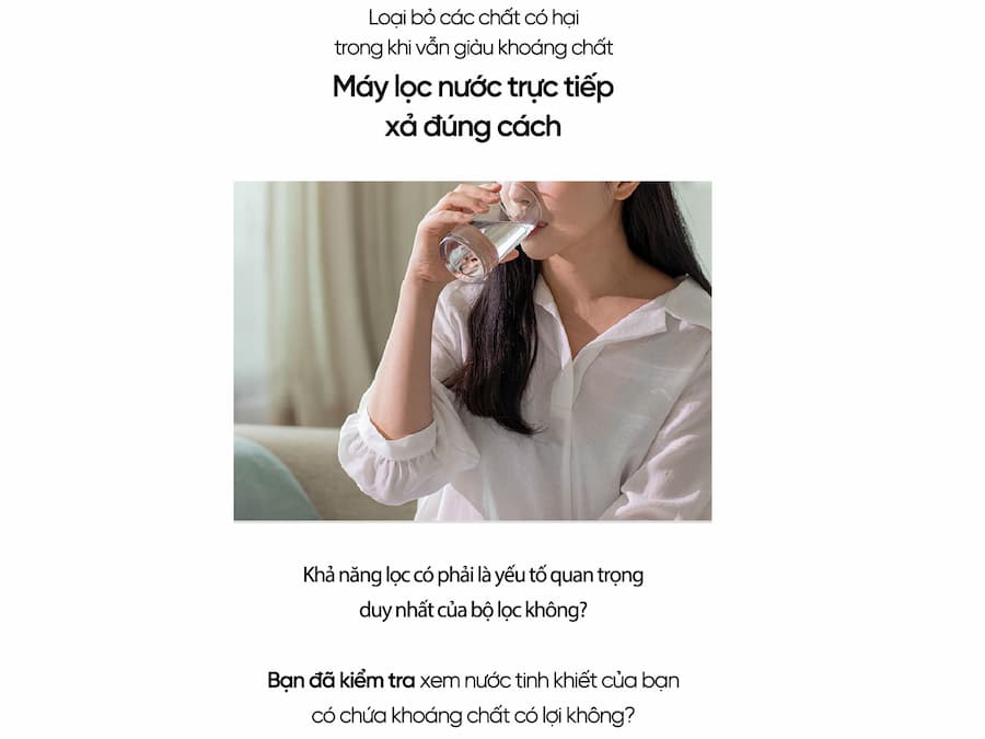 Hệ thống lọc này đảm bảo nguồn nước đầu ra sạch, an toàn để uống trực tiếp, đồng thời vẫn giữ lại các khoáng chất có lợi cho sức khỏe.
