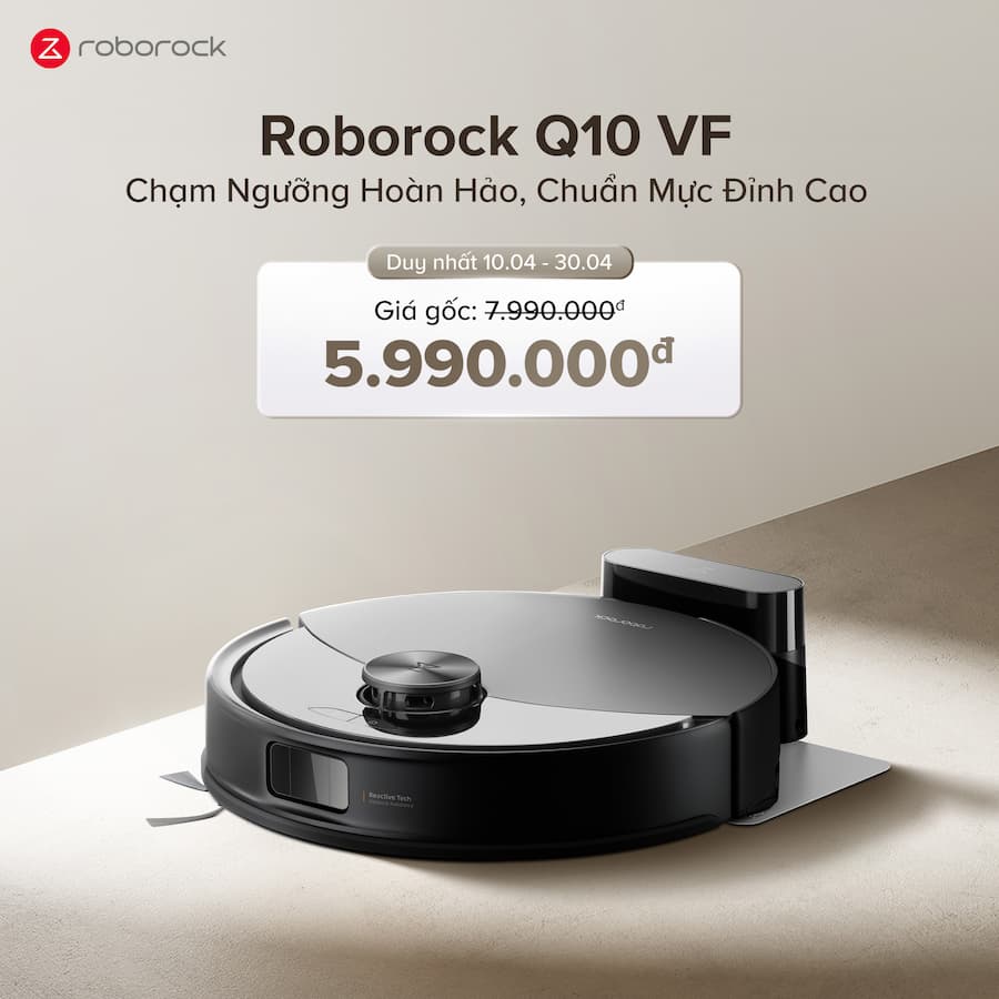 -30%Roborock Q10 VF - CHẠM NGƯỠNG HOÀN HẢO, CHUẨN MỰC ĐỈNH CAO! Sự hoàn hảo không phải là đích đến, mà là một hành trình không ngừng nghỉ. Trên chặng đường ấy, Q10 VF chính là kết tinh của trí tuệ công nghệ và sự thấu hiểu tinh tế - nơi mỗi chi tiết đều được chăm chút chuẩn chỉnh. Robot hút bụi lau nhà Roborock Q10 VF là giải pháp tối ưu cho cuộc sống hiện đại bận rộn để duy trì căn nhà luôn sạch sẽ và an toàn với người dùng. Roborock Q10 VF được trang bị nhiều công nghệ tiên tiến với lực hút 10.000 Pa mạnh mẽ, công nghệ lau rung VibraRise 2.0 cùng thời gian hoạt động lên đến 150 phút trong chế độ tiết kiệm và nhiều tính năng thông minh khác. Điều này giúp bạn và gia đình luôn đạt được trạng thái thư giãn mỗi khi ở nhà cùng gia đình nhỏ của mình.