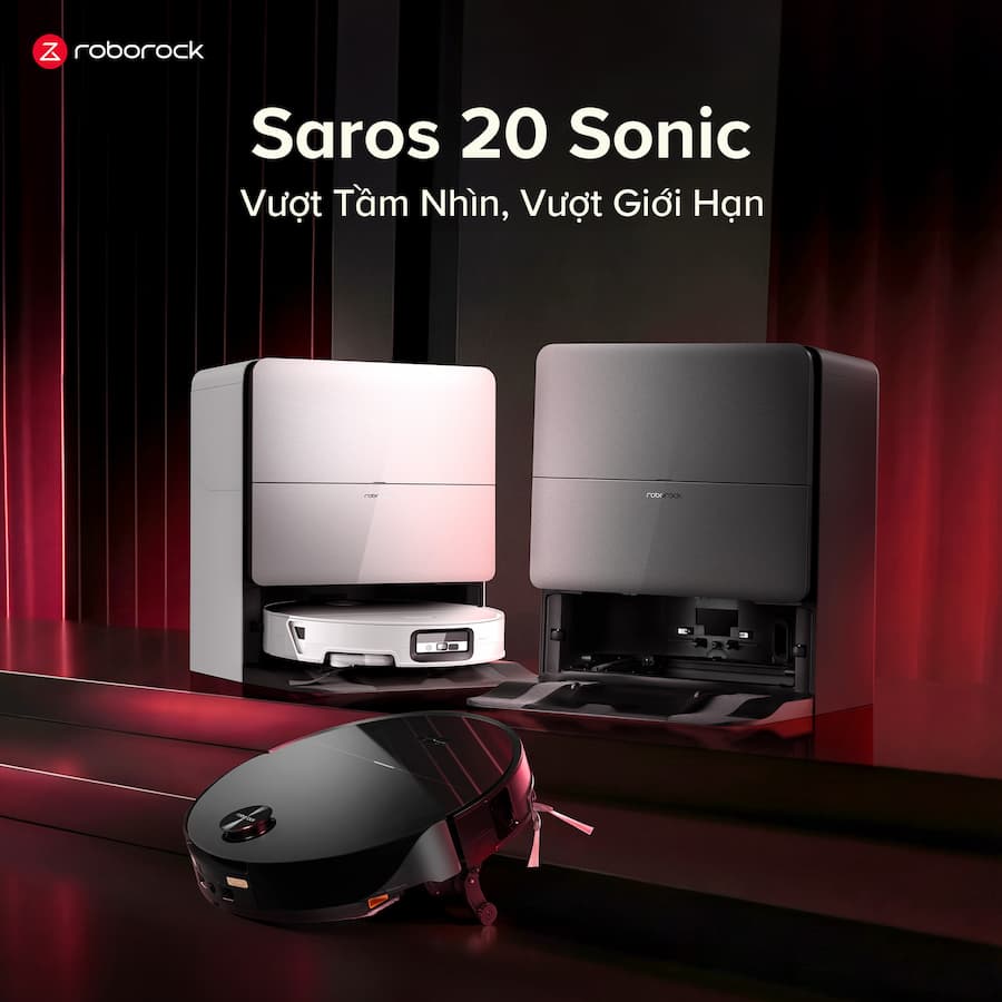 Robot hút bụi lau nhà Roborock Saros 20 Sonic đã sẵn sàng tạo nên "rung chấn" trên toàn bộ sàn đấu công nghệ. Roborock Saros 20 Sonic là robot hút lau cao cấp nổi bật với lực hút HyperForce 35.000 Pa kết hợp công nghệ lau rung VibraRise™ 5.0 lên đến 4.000 lần/phút, giúp làm sạch sâu và không để lại vệt nước. Thiết kế siêu mỏng 7.98 cm cùng khung gầm nâng hạ AdaptLift™ 3.0 cho phép robot linh hoạt vượt chướng ngại và làm sạch hiệu quả trên nhiều bề mặt. Hoàn thiện trải nghiệm là dock sạc đa năng tự động giặt – sấy giẻ nước nóng và điều hướng thông minh Reactive AI 3.0, mang đến khả năng dọn dẹp hoàn toàn tự động, mạnh mẽ và tinh tế.
