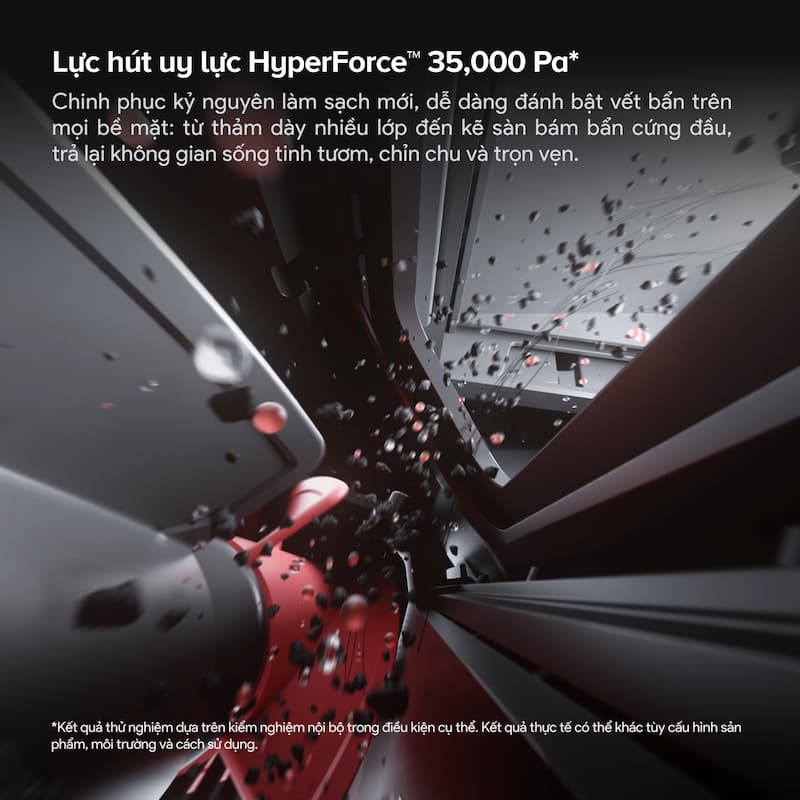 Đây là con số kỷ lục, cao hơn gấp đôi so với nhiều dòng cao cấp hiện nay. Với lực hút HyperForce 35.000 Pa, Saros 20 Sonic có khả năng: