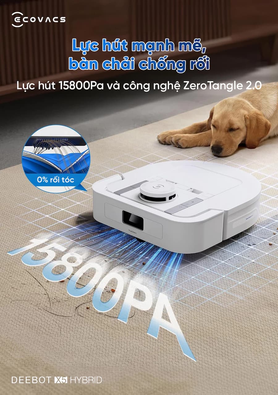 -45%Ecovacs Deebot X5 Hybrid tạo dấu ấn riêng biệt trên thị trường thiết bị vệ sinh thông minh bằng cách tích hợp robot hút bụi tự động với một máy hút bụi cầm tay có thể tháo rời, mang đến giải pháp làm sạch 2 trong 1 toàn diện. Thiết kế này hướng đến việc cung cấp khả năng làm sạch sàn nhà triệt để cùng với sự linh hoạt trong việc dọn dẹp tại chỗ cho các bề mặt cao hơn và những khu vực khó tiếp cận. Những điểm nổi bật chính của sản phẩm bao gồm lực hút mạnh mẽ (lên đến 15.800 Pa), công nghệ chống rối ZeroTangle 2.0 tiên tiến giúp ngăn ngừa tóc và lông thú bị kẹt, cùng với thiết kế hình chữ D tối ưu hóa việc làm sạch các cạnh. Trạm sạc đa năng của thiết bị được trang bị hộp chứa bụi 3.2L, cho phép quản lý bụi rảnh tay lên đến 90 ngày. Sản phẩm này đặc biệt phù hợp với các hộ gia đình bận rộn, đặc biệt là những gia đình có trẻ nhỏ hoặc thú cưng, những người tìm kiếm một thiết bị làm sạch tự động cao nhưng vẫn linh hoạt để tiết kiệm thời gian và giảm thiểu công sức thủ công.