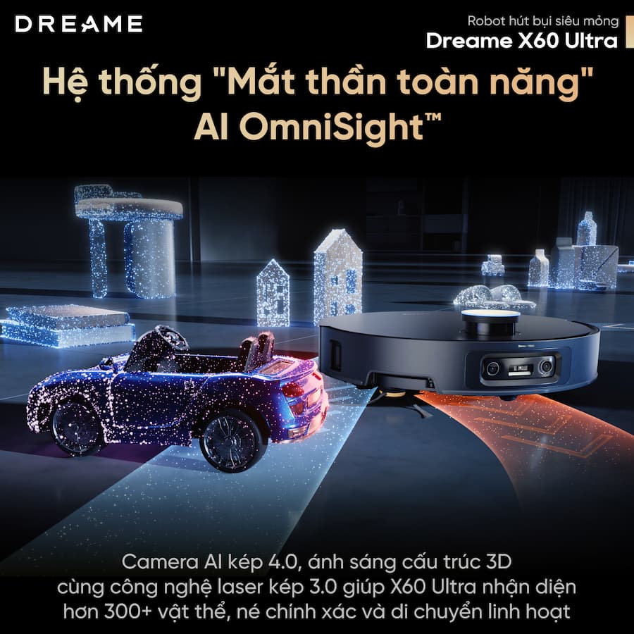 - Phản hồi tức thì, chính xác từng milimet: Với camera AI kép, X60 Ultra phát hiện hơn 300 vật thể siêu nhỏ. Nhìn rộng hơn, phản hồi nhanh hơn, sạch không bỏ sót.