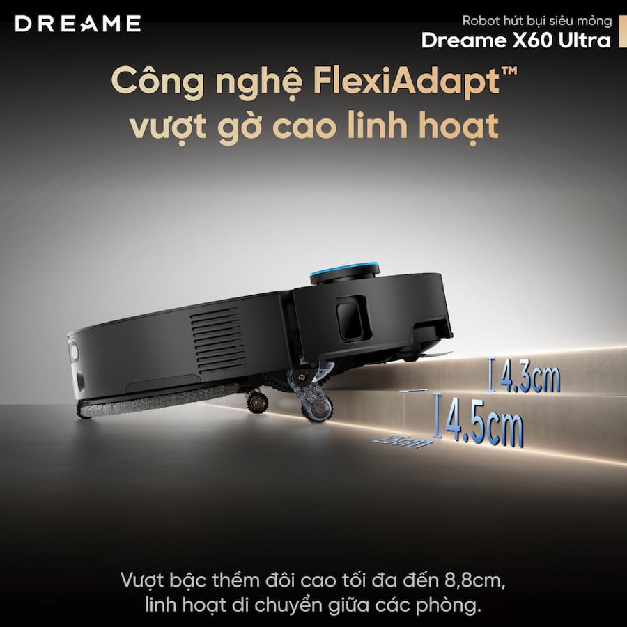 - Công nghệ vượt chướng ngại vật FlexiAdapt™cho phép X60 Ultra dễ dàng vượt qua vật cản cao đến 8,8cm.