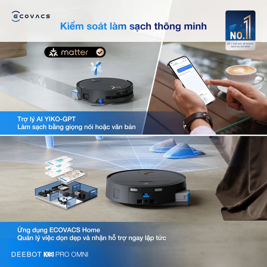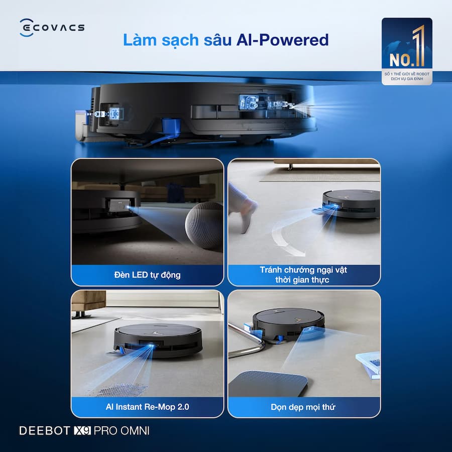 -30%Ecovacs Deebot X9 Pro Omni là một robot hút bụi lau nhà tiên tiến, được thiết kế để mang lại khả năng làm sạch toàn diện và hiệu quả trong không gian sống hiện đại. Sản phẩm này đã nhanh chóng khẳng định vị thế của mình trên thị trường, được Vacuum Wars vinh danh là "Robot hút bụi tốt nhất giữa năm 2025" và giành năm giải thưởng lớn, bao gồm giải "Tổng thể tốt nhất", "Lau nhà tốt nhất", "Tốt nhất cho sàn cứng", "Tốt nhất cho thảm" và "Tốt nhất cho thú cưng". Mặc dù là một sản phẩm mới, X9 Pro Omni đã nhanh chóng vươn lên vị trí số một trong danh sách top 20 robot hút bụi của Vacuum Wars. Robot hút bụi lau nhà Ecovacs X9 Pro Omni nổi bật sáng tạo và mạnh mẽ, đặc biệt xuất sắc về lực hút, khả năng làm sạch sâu thảm và các tính năng lau nhà tiên tiến. Trạm OMNI của nó cung cấp chu trình làm sạch và bảo trì gần như hoàn toàn tự động, nâng cao đáng kể sự tiện lợi cho người dùng. Các công nghệ điều hướng thông minh, tránh vật cản và chống rối tóc góp phần tạo nên trải nghiệm làm sạch tinh vi và phần lớn là rảnh tay.