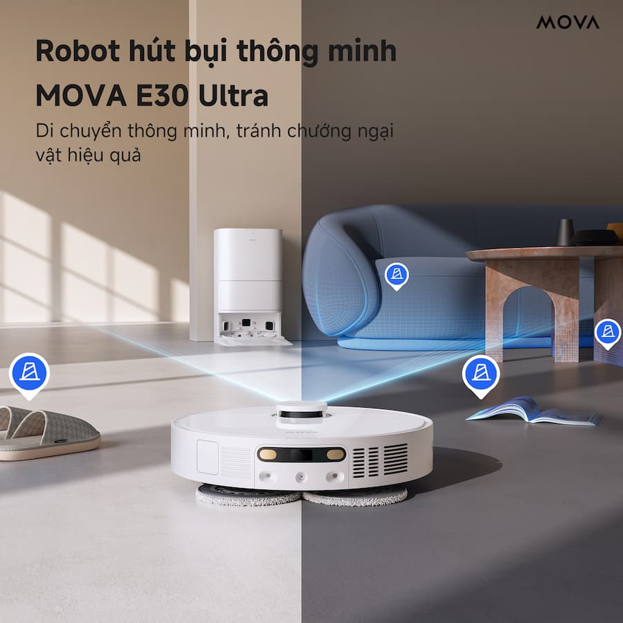 -26%Robot hút bụi lau nhà MOVA E30 Ultra: Định nghĩa của sự sáng bóng! Sao phải chấp nhận một sàn nhà sạch "tạm tạm" khi E30 Ultra có thể biến sàn trở nên sáng bóng? Sự kết hợp hoàn hảo của bộ đôi giẻ lau xoay kép và lực hút Vormax 7000Pa trả lại cho bạn mặt sàn nhẵn bóng, không vết bụi mịn. Khả năng tránh vật cản đẳng cấp nhờ hệ thống LiDAR 3DAdapt™ giúp bạn an tâm khi robot di chuyển mọi ngóc ngách trên sàn mà không va đập! MOVA E30 Ultra: Di chuyển thông minh, tránh chướng ngại vật hiệu quả Mở app, set lịch, ting! Tới giờ dọn nhà của "em Tấm" MOVA E30 Ultra rồi. Nhưng quên chưa kịp gói ghém đồ đạc linh tinh dưới sàn, liệu ẻm có biết đường tránh không? Được trang bị công nghệ PathFinder™, MOVA E30 Ultra có khả năng né vật cản trên đường lau dọn một cách chính xác. Bạn sẽ không còn lo robot va phải những vật linh tinh dưới sàn nhà. Giờ thì yên tâm để em Tấm dọn nhà, mình cứ chill cuối tuần đi nha!