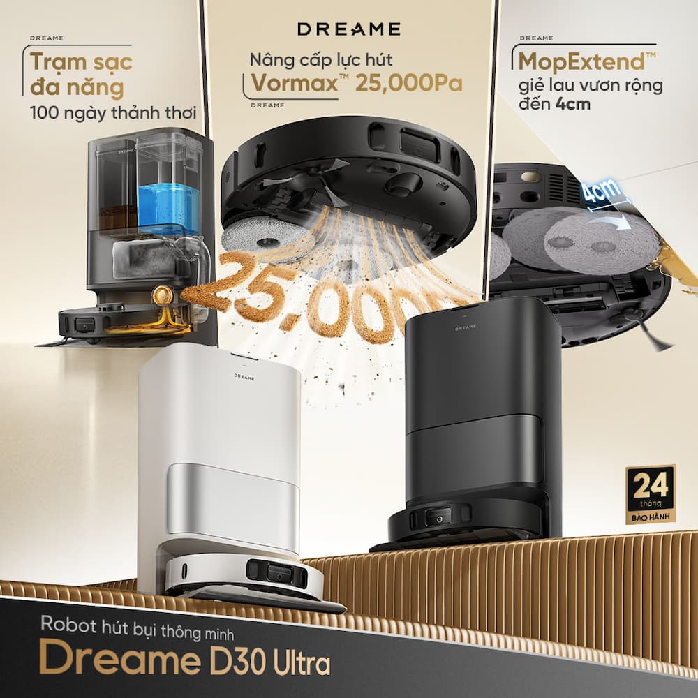 -37%Ngân sách "nhỏ nhỏ xinh xinh" chỉ cho phép bạn mua robot tầm trung? Vậy nên cân nhắc ưu tiên tiêu chí nào? Lực hút mạnh? Trạm sạc thông minh? hay Giẻ lau xòe linh hoạt? Sao phải đắn đo chọn 1 trong 3 khi Dreame D30 Ultra có tất cả? Là phiên bản mới nhất của dòng D-series siêu hot, robot hút bụi Dreame D30 Ultra sở hữu bộ trọn bộ các tính năng cận cao cấp với mức giá mềm mại. Robot hút bụi lau sàn Dreame D30 Ultra là dòng sản phẩm mới (ra mắt khoảng đầu năm 2026) định vị ở phân khúc hiệu năng cực cao nhưng có mức giá dễ tiếp cận hơn so với dòng flagship X hay L series. Sở hữu hàng loạt công nghệ tiên tiến, Dreame D30 Ultra không chỉ làm sạch sát cạnh hiệu quả mà còn linh hoạt vượt gờ, tránh chướng ngại vật và lập bản đồ chính xác, đảm bảo quá trình dọn dẹp diễn ra mượt mà, liên tục và tối ưu hiệu suất làm sạch. Đáp ứng mọi yêu cầu của bạn về tính năng và mức giá hợp lý, sở hữu ngay Robot hút bụi thông minh Dreame D30 Ultra với trợ giá ra mắt hấp dẫn!