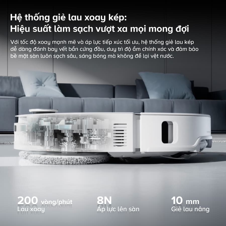 -22%Khi công nghệ không chỉ để tiện nghi, mà còn là một phần của phong cách sống. Roborock ra mắt trong tháng 5/2025 – Qrevo EdgeT là cú chạm hoàn hảo giữa hiệu suất và mỹ học. Được phát triển từ loạt di sản công nghệ cao cấp, Roborock Qrevo EdgeT là minh chứng cho việc trải nghiệm đỉnh cao không còn là đặc quyền của phân khúc flagship. Robot hút bụi lau sàn Roborock Qrevo EdgeT là một sản phẩm cao cấp với nhiều tính năng nổi bật, được thiết kế để mang lại hiệu quả làm sạch vượt trội và sự tiện lợi tối đa cho người dùng. Qrevo EdgeT với thiết kế siêu mỏng chỉ 7,98 cm, dễ dàng len lỏi vào mọi ngóc ngách. Trang bị lực hút HyperForce 18.500 Pa, giẻ lau xoay kép, công nghệ điều hướng RetractSense cùng AI nhận diện 108 vật thể, sản phẩm làm sạch chính xác và thông minh vượt trội. Trạm sạc đa năng 3.0 tích hợp 8 tính năng giúp bạn hoàn toàn rảnh tay trong suốt quá trình dọn dẹp.
