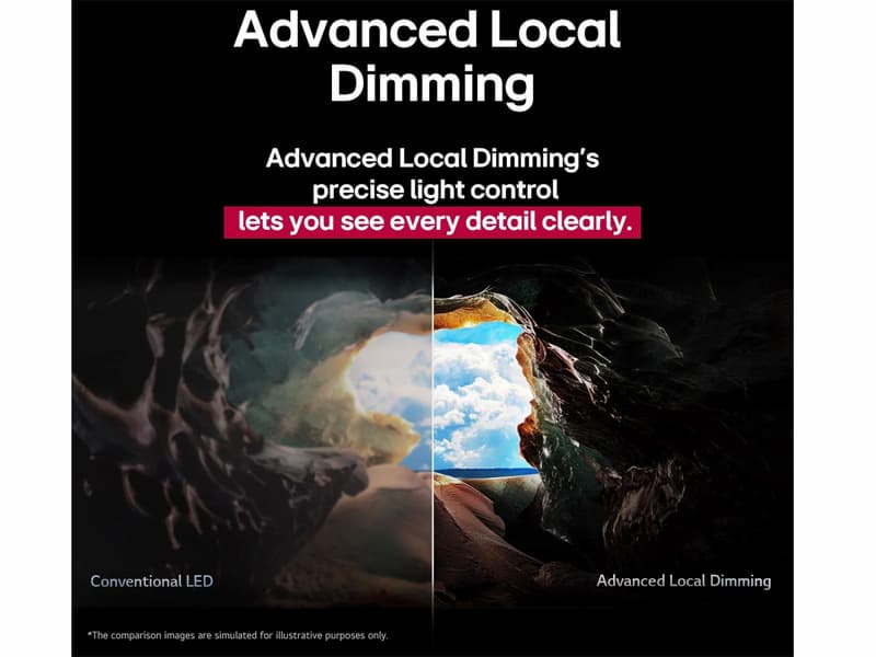 Công nghệ Local Dimming: Mặc dù không phải là Mini-LED như trên các dòng cao cấp hơn (ví dụ như 86QNED86ASA), nhưng công nghệ Local Dimming (kiểm soát đèn nền cục bộ) vẫn giúp TV kiểm soát độ sáng và độ tương phản tốt, làm cho màu đen sâu hơn và các chi tiết trong vùng tối rõ ràng hơn. Tuy nhiên, hiệu quả sẽ không bằng các TV sử dụng công nghệ Mini-LED.
