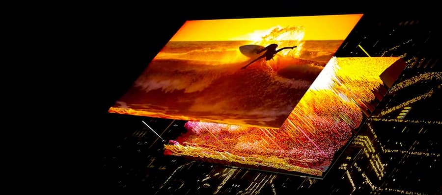 Công nghệ hiển thị cốt lõi của QA85QN85FAKXXV là hệ thống đèn nền Quantum Mini LED Pro/Plus. Công nghệ này sử dụng một số lượng lớn các đèn LED cực nhỏ (Mini LED) để tạo ra hàng ngàn vùng làm mờ cục bộ (local dimming zones). Hệ thống Mini LED cho phép kiểm soát ánh sáng chính xác đến từng điểm ảnh, mang lại độ tương phản vượt trội. Khả năng kiểm soát ánh sáng này đảm bảo các vùng tối đạt được màu đen sâu thẳm ("vùng tối sâu thẳm") và các vùng sáng đạt được độ rực rỡ nổi bật ("vùng sáng rực rỡ"). Sự kiểm soát chính xác này rất quan trọng để giảm thiểu hiện tượng quầng sáng (haloing hay blooming) thường gặp trong các hệ thống làm mờ cục bộ kém tiên tiến hơn, từ đó cung cấp chất lượng hình ảnh tiệm cận với các màn hình tự phát sáng (OLED) nhưng vẫn giữ được lợi thế về độ sáng đỉnh cao của công nghệ QLED.