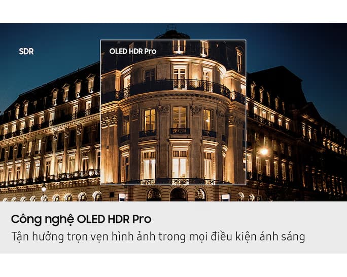 Công nghệ QD-OLED: Kết hợp ưu điểm của cả OLED (độ tương phản vô hạn, màu đen sâu tuyệt đối) và Quantum Dot (độ sáng cao, dải màu rộng và rực rỡ). Nhờ đó, TV hiển thị hình ảnh với màu sắc sống động, chân thực và có chiều sâu ấn tượng, không bị hiện tượng quầng sáng (blooming) quanh các vùng sáng.